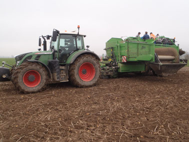 Kartoffelernte mit 2-reihigem Bunkerroder.